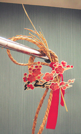 注連縄の結び方が個性的なので全体的に梅にガッツリシックリ合ったまとめ方!
