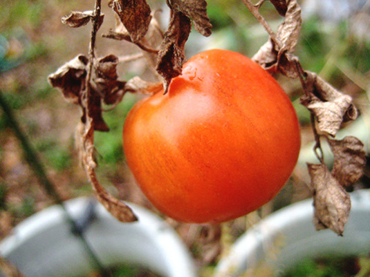 トマト、やっと赤くなった。