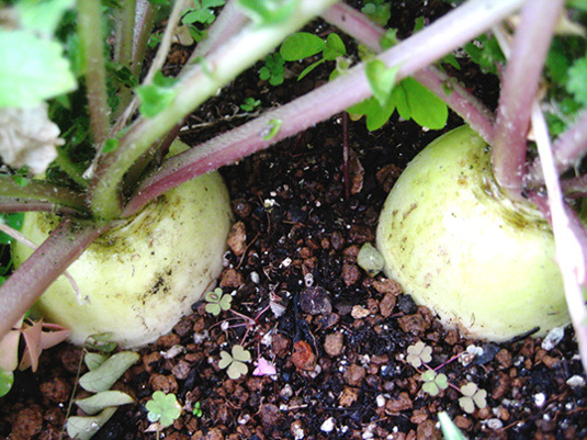 ミニ大根は、まだまだじりじりプクプク生長中♪といったトコロか?