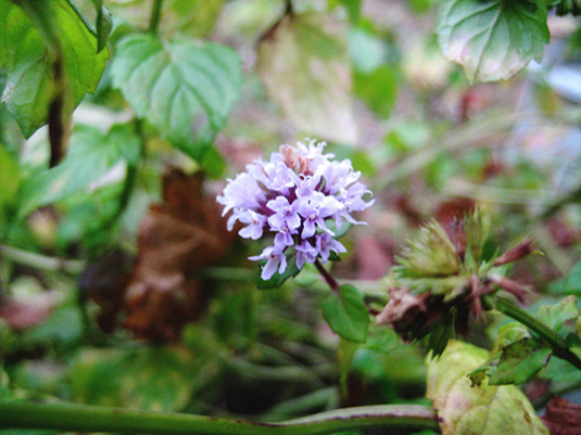 おお、ミント、ところどころに、まだ花咲いてた。