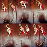 絵柄も縄の動きも位置やまとめ方も、注連縄の先に付ける布も、皆微妙に違って、