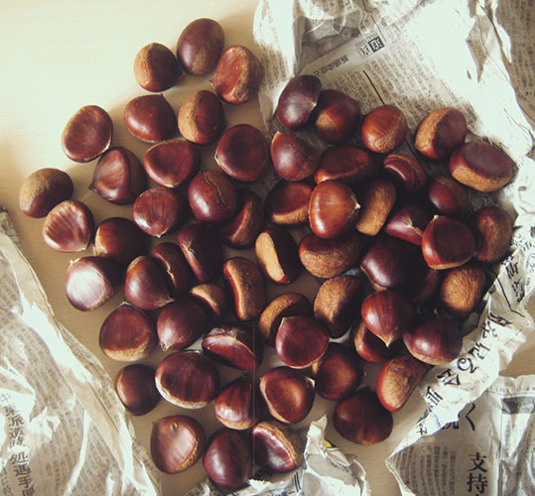大きめの袋と、大きめの袋と、小袋と。3袋分。たぶん栗の種類は2種類だと思う。