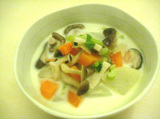 豆乳スープ、再。大根の葉は、美味しすぎる。そして、講座で習った再現その2。 五香粉を使って。