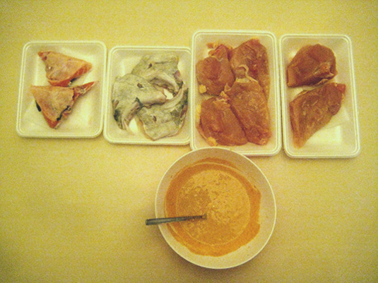 今回は、鶏胸肉3枚、真タラかま3つ、サーモンかま2つ、を漬けてみた。