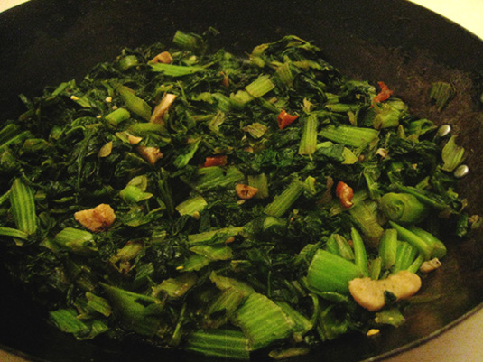 生の高菜で、ごま油、ニンニク、生姜、唐辛子、醤油、納豆のタレ、
