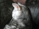 ヒトの首のトコロでマフラーのようにまたがって寝ている日もあったり。