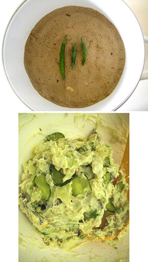 糠漬けのひよこ豆と、糠漬けキュウリ、天空のオクラ、を使って。