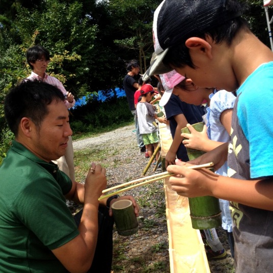 今年は毎年恒例の屋外講座「そうめん流し」です。