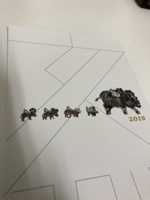 トミタさんから写真にある亥年の年賀状もらいました!メカイノシシ!?