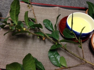 持って来ていただいたのは「お茶の木」。お茶の花。