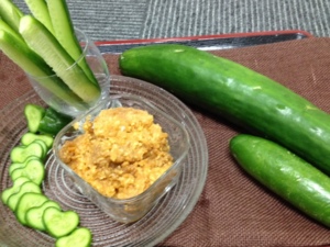 今週は、ファーム管理人のさとみさんは、とれたてきゅうりと、手作りみそをもって来てくれました!