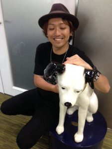 *写真はレコード会社の名犬を手なずける笹木店長。