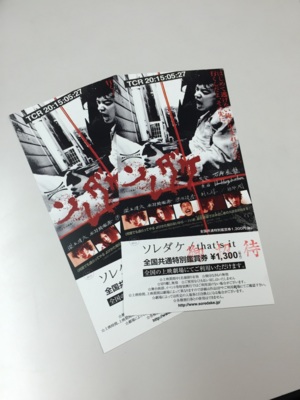 今日は石井岳龍監督作品「ソレダケ / that's it」チケットを