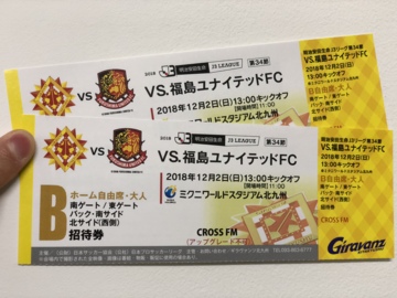 12月2日(日)13時キックオフ、ザスパクサツ群馬戦をペア5組の方です