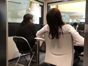 写真はイスの贅沢具合を比べています(笑)