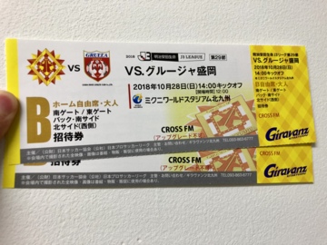 日程 : 10月28日(日) グルージャ盛岡戦 14:00~キックオフ