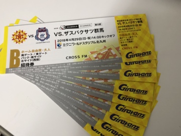 次回の試合観戦チケットのプレゼントのお知らせ!