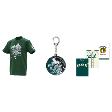 (門田選手のTシャツ、野村選手のキーホルダー、南海ホークスのクリアファイル)