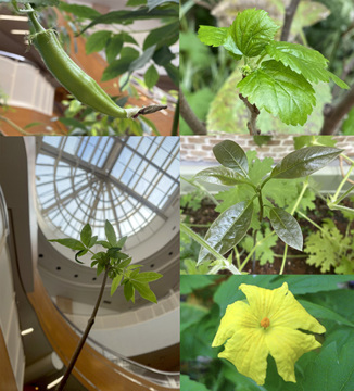 ・オクラの実、新芽たち、ゴーヤのお花