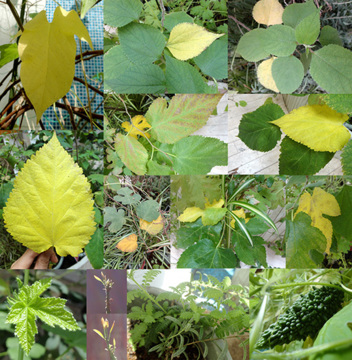 ・ファーム近況(朝顔・桑・カラムシの黄葉、オクラ・アボカド・ハーブの新葉、ゴーヤの実)