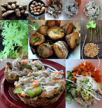 ・旬の里芋とファームの金胡麻でタロサラ&里芋のカレーハーブ味