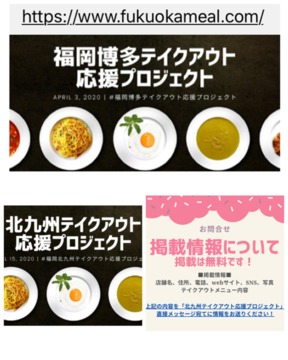 博多から始まったテイクアウト応援プロジェクトが市外県外に広がっています。もちろん外出を推奨するものではありません。スムーズな受け取りができるよう事前の電話連絡をして、飲食店を応援して下さい!