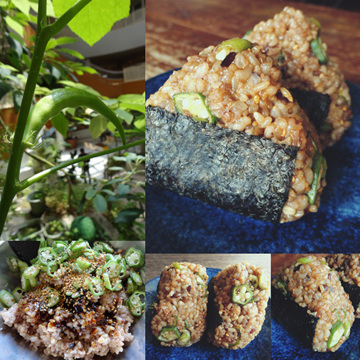 ファームで育ったオクラと金胡麻を加えておにぎりに!