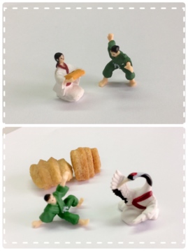 ということで、ジオラマ用の人形と日用品をモチーフに見立てられた楽しい作品が福岡市科学館に勢ぞろいです。
