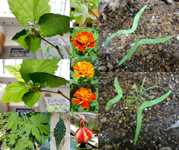 ・ファーム近況(桑の花、オリヅルラン、マリーゴールド、ゴーヤ、ハイビスカスローゼル、謎の芽(ルコウソウ))