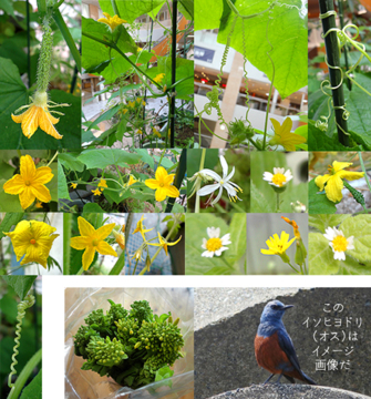 ・花束みたいな食用の菜の花、イソヒヨドリ(オス)