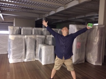 広大な倉庫に、とんでもない量の家具がストックされています。