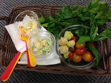 裕子さん、今日は セロリ、トマト、ホオズキを持って来てくれました。
