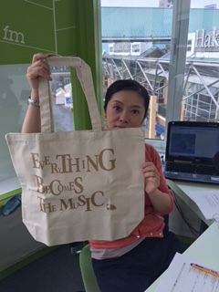 CROSS FM にチューニングを合わせてくれている、お店や会社におジャマして、「CROSS FM トンデます」のステッカーを貼っているハニーさん。