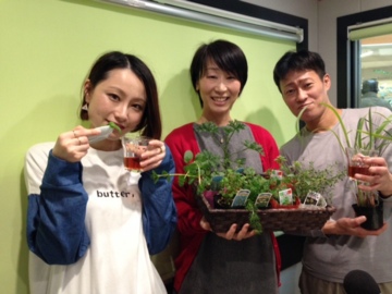 ハーブの苗植えを行います。ということで、cross fmファームで育っているハーブでフレッシュハーブティを用意してきてくれました。