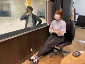 右耳で相方の声、左耳でディレクターの指示を聞いてます!