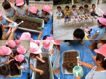 先週、保育園児さんたちがミニ大根とほうれん草の種蒔きを手伝ってくれました!
