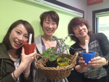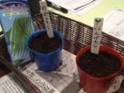 今日は、スタジオで 小さなポットに インゲンの種をまきました。