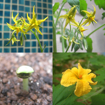 ・マイクロトマトの花、ナゾの生物みたいなゴーヤの芽、ゴーヤの花
