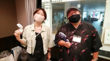 今日は2人の自前の扇風機を持ってきたのですが、