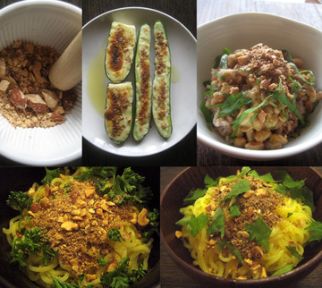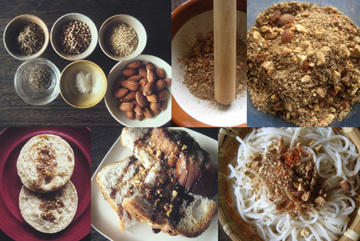 アーモンドとクミンシード、コリアンダーシード、白ごま、塩、ブラックペッパーを炒ったり擂ったりして出来上がり♪